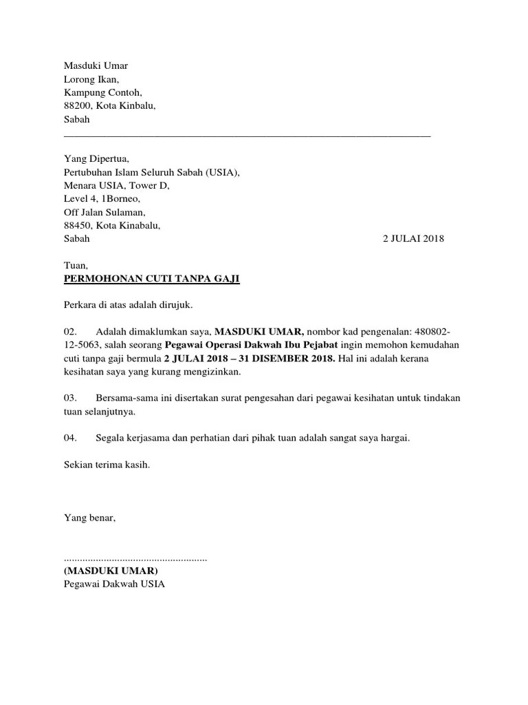 Surat rasmi memohon cuti tanpa gaji surasmi k cute766.